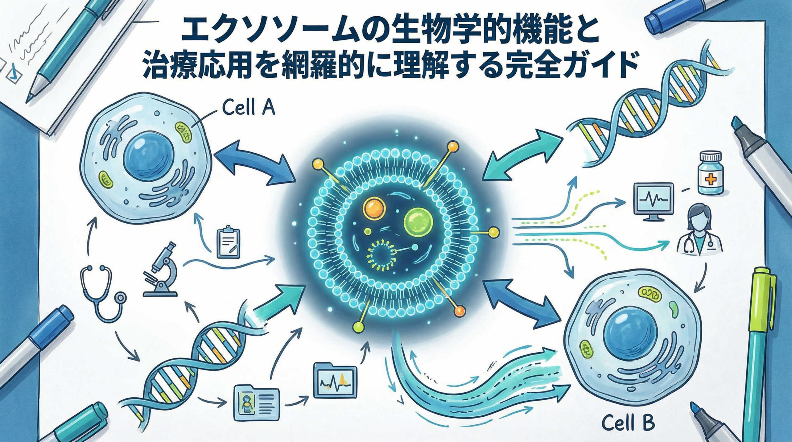 再生医療の分野において、幹細胞そのものを用いる治療から、細胞が分泌する「エクソソーム」を活用したCell-free therapy(細胞を用いない治療)へと、大きなパラダイムシフトが起きつつあります。エクソソームは、細胞間コミュニケーションの重要なメディエーターとして機能し、その生物学的機能の解明が進むにつれて、難治性疾患に対する新たな治療モダリティとしての期待が高まっています。